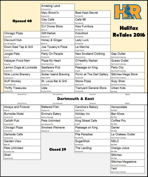 and now a listing of the opens and closes of 2016, I separated them into five zones, 177 opens to 103 closes, there were a few that fell in both open and close.