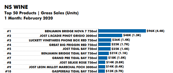 There is a free report for February available at https://grownsdrinks.ca/ which gives number like below if you are curious about NSLC sales